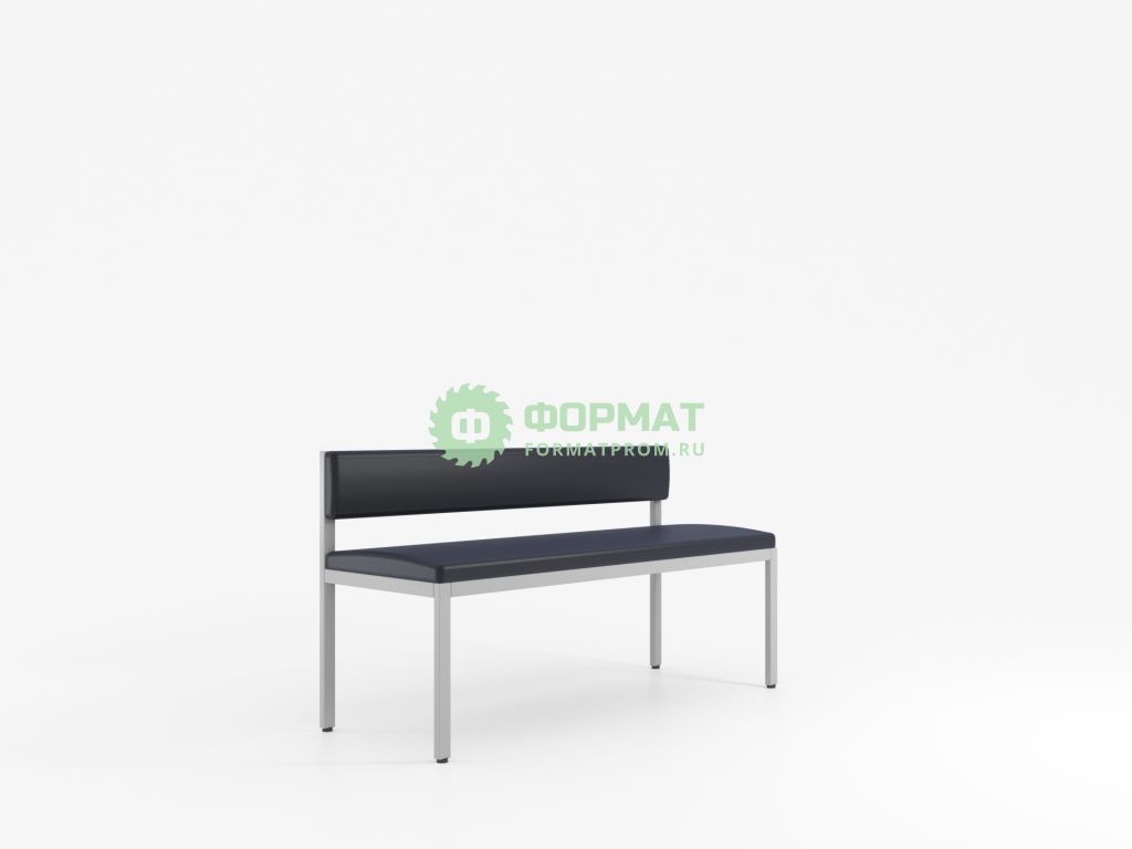Лавка на металлическом каркасе. Мягкая верхняя крышка и спинка из искусственной кожи. Каркас лавки - сталь, окрашен порошковой эмалью. Имеет стальные регулировочные ножки с пластиковым основанием.