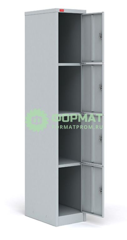 Односекционный металлический шкаф для сумок разборный, с четырьмя отделениями. Шкафы ШРМ - 14 используются для хранения сумок, пакетов, а также сменной одежды.