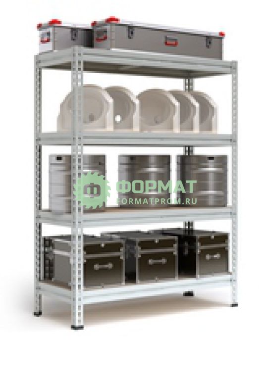 Металлические складские стеллажи серии Титан - МС - Т предназначены для хранения различных грузов. Стеллажи состоят из стоек, продольных и боковых балок. Стойки стеллажа изготовлены из высокопрочной стали специальной марки, имеют дополнительные ребра жесткости.Для расчета стоимости стеллажа необходимо посчитать стоимость стоек (4шт на секцию), полок (необходимое количество) и балок (на каждую полку необходимо 2 длинные балки (1820 мм или 1515 мм) и 2 короткие (506, 600 или 750)). Стеллаж собирается на зацепы. Каждая стойка комплектуется пластиковым подпятником. Стойка серии МС - Т позволяет выдерживать равномерно распределенную нагрузку до 2200 кг (до 300 кг на полку). Настилом для стеллажа служат листы влагостойкой фанеры. Балки металлического стеллажа крепятся к стойкам при помощи двух замков с зацепом и надежно фиксируют стойки в вертикальном положении. Прочная фиксация стоек и влагостойкое порошковое полимерное покрытие полок обеспечивают надежное хранение предметов в условиях повышенной влажности воздуха и перепадов температур.